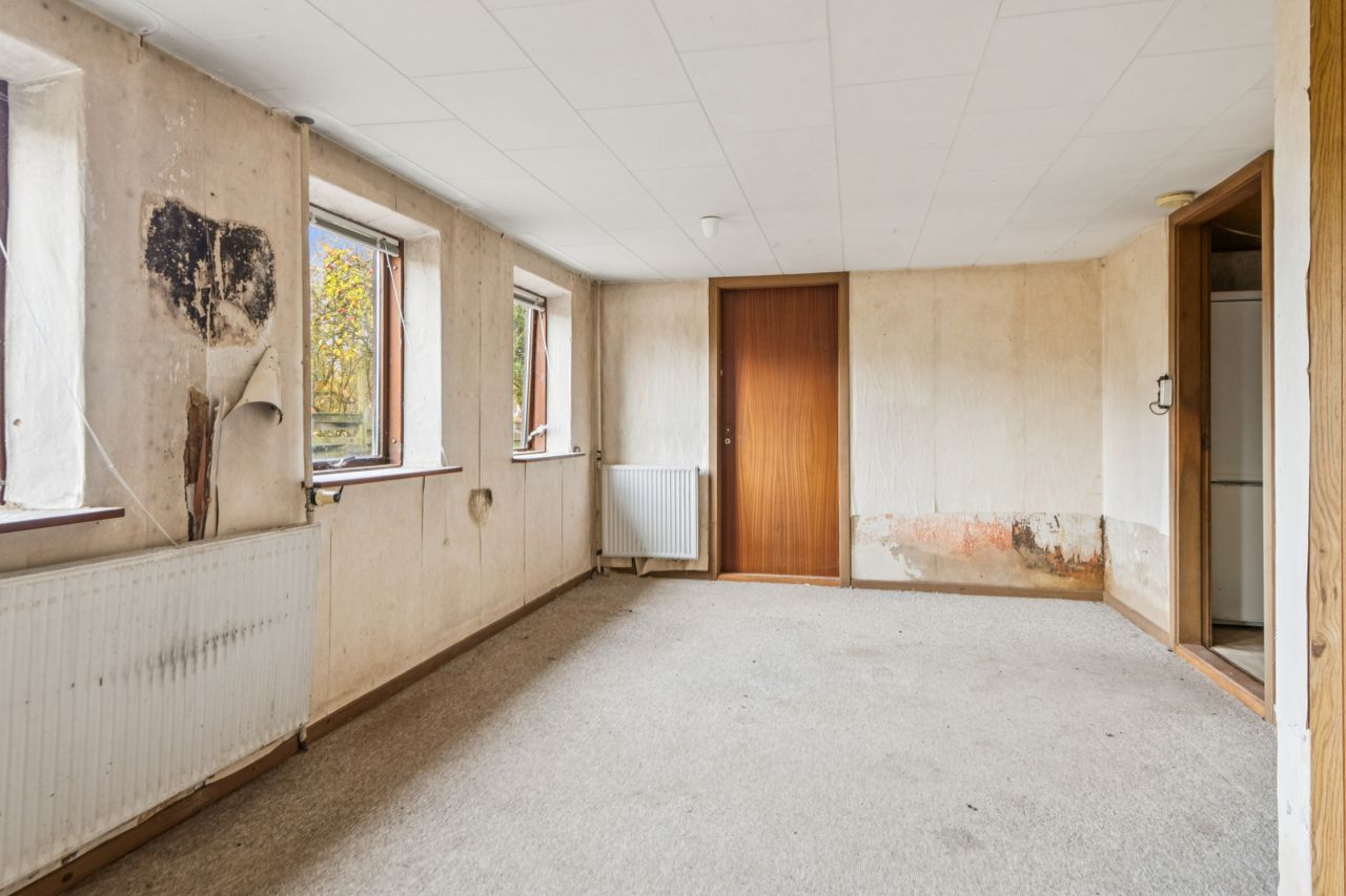 På den store grund står et hus fra 1852. Her er tale om et håndværkertilbud, som kræver knofedt og kærlighed, så du får mulighed for at sætte dit helt eget præg på rammerne og få det hele præcis, som du vil have det. Boligen byder i dag på 105 m2 i ét plan med bl.a. tre værelser, bryggers, stue, køkken og to oplagte badeværelser. Tilstødende boligen finder du nogle disponible rum, hvoraf det ene har videre afsæt til en højloftet garage, der kan forvandles til et hobbyrum, et skønt værksted for håndværkeren eller noget helt tredje. Rundt om på den grønne grund kan du lade havedrømme blive til virkelighed og anlægge et herligt uderum med solterrasser, urtehave, hyggekroge og meget andet.