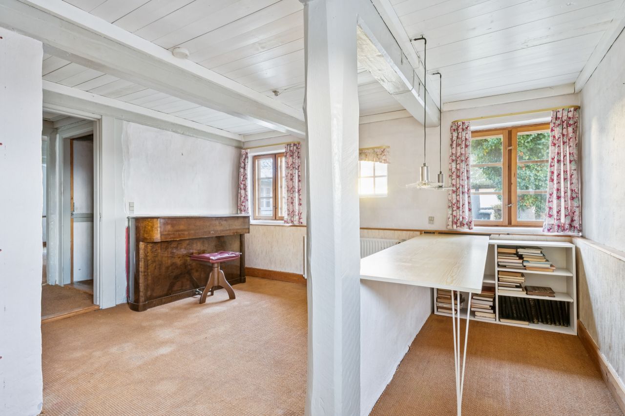 På de 145 m² er boligen indrettet både funktionelt og stemningsfuldt. Køkkenet fungerer som det naturlige samlingspunkt og forbinder boligens øvrige rum på elegant vis. Rå bjælker og pudsede vægge trækker tråde til husets historie og er med til at skabe en hyggelig atmosfære. Køkkenalrummet har god plads til samvær, hvor familiens og venners hyggestunder kan folde sig ud i rolige omgivelser. Herfra er der adgang til en rummelig stue, som giver gode muligheder for at skabe både spiseplads og opholdsområde. Soveværelset byder på en rolig base, og badeværelset ligger praktisk ved entréen og matcher resten af hjemmets hyggelige stil. Derudover får I flere disponible rum samt et indbydende gangareal, der binder huset sammen og inviterer til individuel indretning