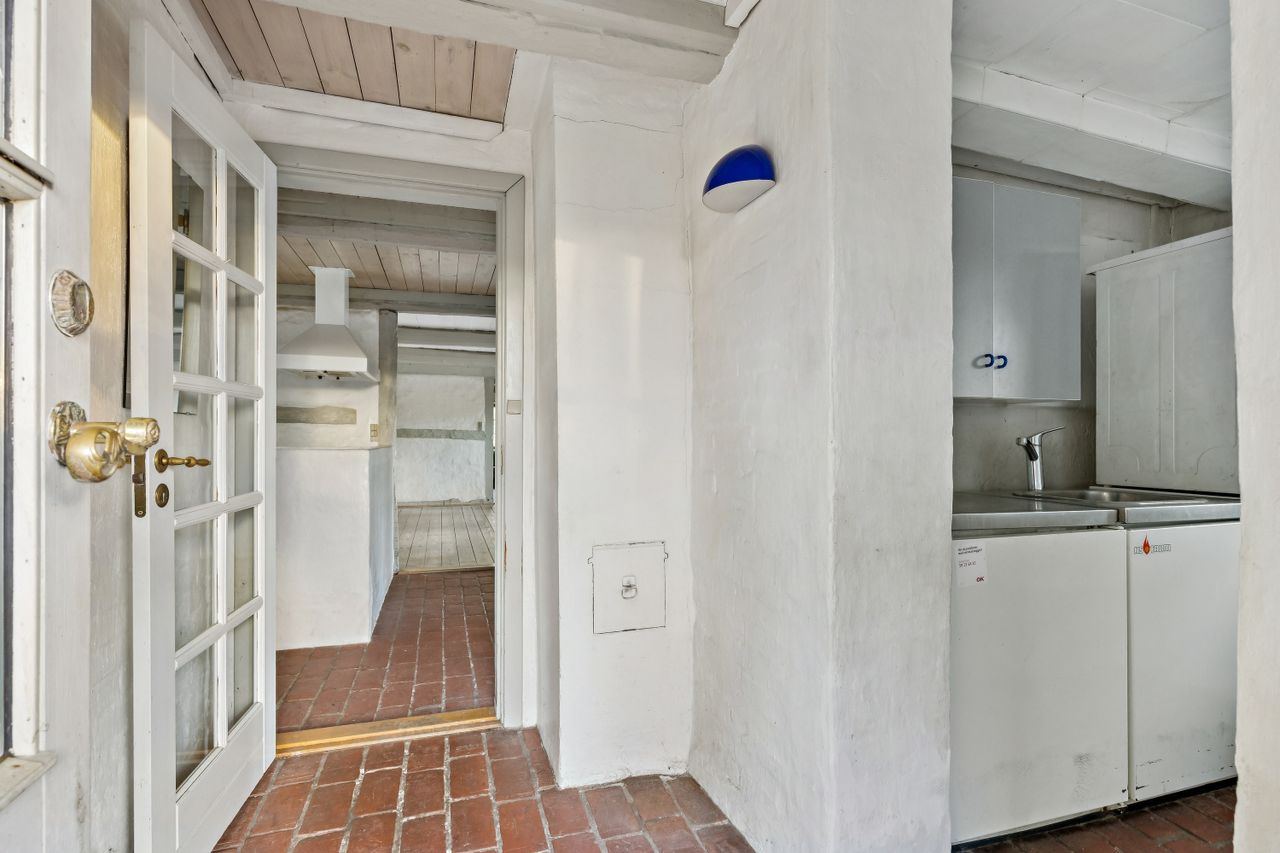 Allerede ved første møde med denne ejendom i Holløse fornemmer man hjemmets autentiske stemning. Bindingsværket og det karakteristiske stråtag giver boligen et helt særligt udtryk, hvor den sorte trækonstruktion smukt harmonerer med de lyse tavl. Her træder man ind i en bolig, der emmer af tradition og charme, samtidig med at der er fine muligheder for at sætte sit eget præg og skabe personlige rammer for hverdagen.
