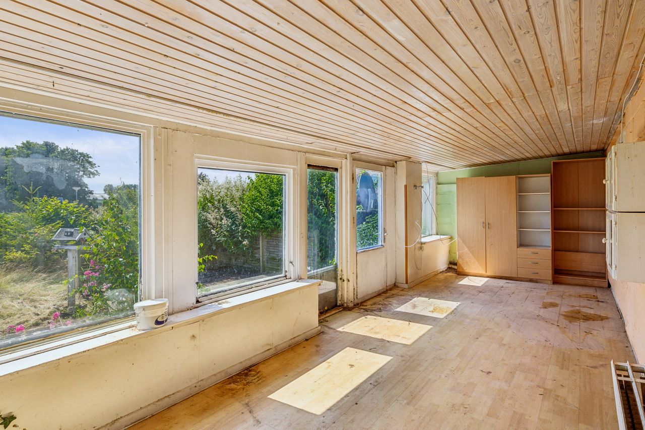 Vender du blikket hjem mod adressen, bliver du mødt af en etplansvilla fra 1950, og den råder over 90 m2 fordelt på værelse, badeværelse, køkken samt to stuer, og dertil kommer en udestue. Måske du vil puste nyt liv i gamle klæder?