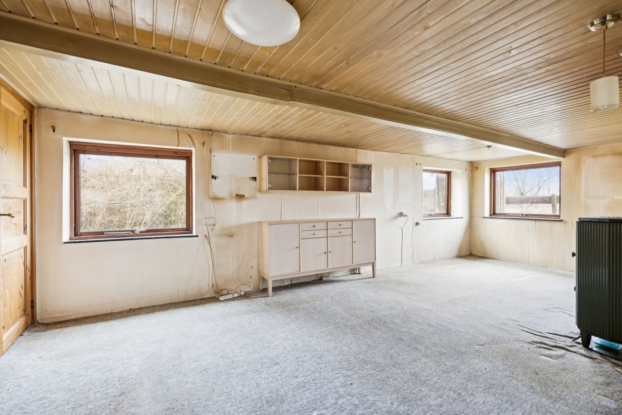 Ejendommen ligger midt i det åbne landskab, hvor naturen fylder mere end naboerne, og hvor der er plads til drømme og projekter. Her vil den lille familie, parret eller gør-det-selv-entusiasten med hang til albuerum straks føle sig hjemme.
