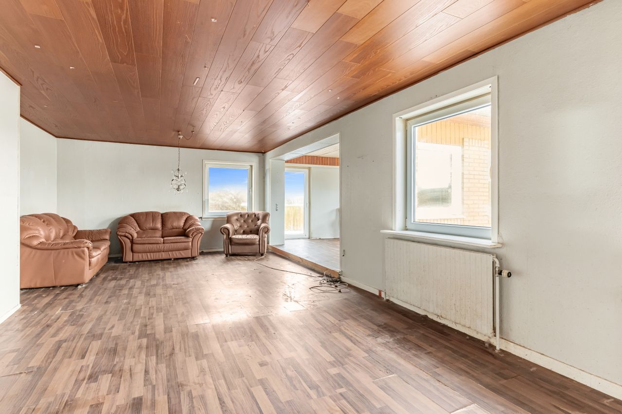 Nu kan du overtage nøglerne til en villa, der kan blive til et dejligt hjem. Du overtager en villa på 159 boligkvadratmeter plus en kælder på hele 109 kvadratmeter. Huset rummer fem værelser, to badeværelser, køkken og to store stuer, og de mange rum giver mange muligheder. Her kan solisten eller parret få plads til børn eller hobbyprojekter – eller måske en separat teenageafdeling eller flere generationer under samme tag?